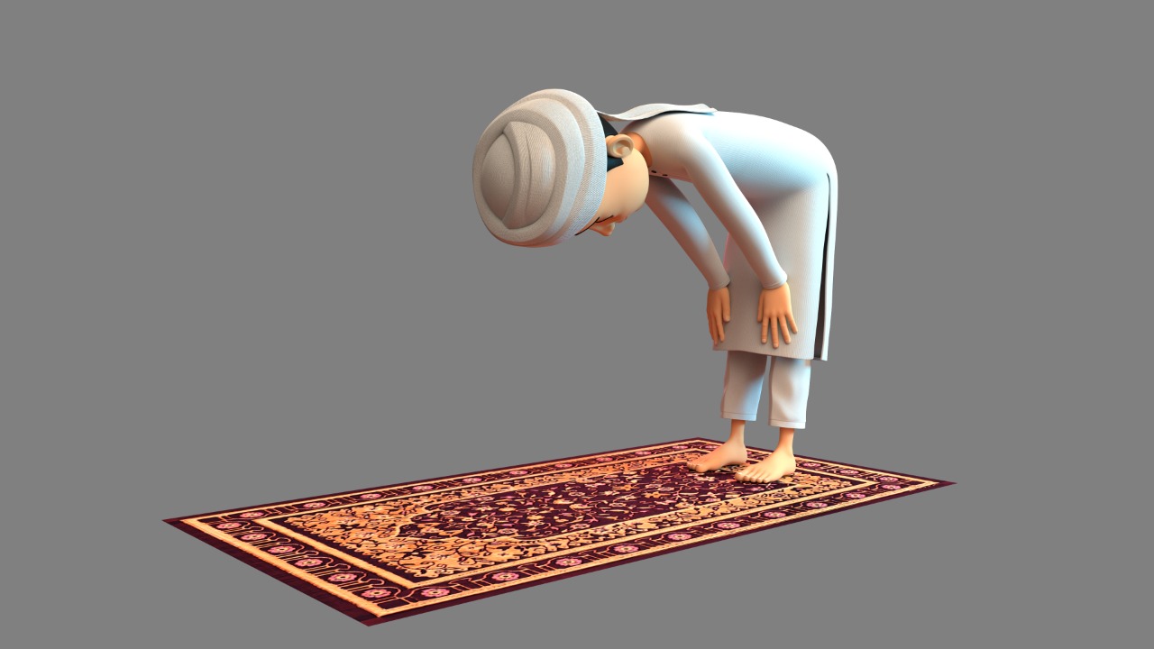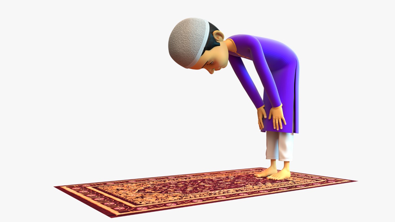 3.When the Imam says ‘ اَللّٰہُ اَکْبَر’, and goes for Ruku’ you must also do the same while saying ‘ اَللّٰہُ اَکْبَر’, bow and grasp your knees with your hands (It is called Ruku’).